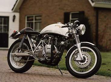 Cafe Races: também derivadas das motos clássicas, as Cafe Races podem ser consideradas as antecessoras remotas das atuais motos esportivas. Assim como as bobbers, caracterízam-se pela retirada de peças para alívio do peso, visando a melhoria no desempenho. O acento é monoposto, caracterizado por uma rabeta curta, terminada em cunha, estofada, de fibra de vidro, plástica ou metálica. As pedaleiras de comando são bastante recuadas e o guidão é baixo, forçando uma posição de pilotagem bem inclinada à frente, obrigando o piloto a praticamente se deitar sobre o tanque de combustível. Mas, a principal característica dessas motos é o motor cuidadosamente preparado para obtenção de maior potência. Os motores preferidos pelos preparadores eram os da Norton e os da Vincent, e isso gerou uma curiosa proliferação de motos híbridas, que utilizavam motores de uma marca e quadro de outra, como as Triton (Triumph + Norton), Norvin (Norton + Vincent), Norbsa (Norton + BSA), Tribsa (Triumph + BSA) dentre outras. As Cafe Race eram muito utilizadas em provas (ilegais) de rua, mas era também muito comum sua participação em provas oficiais, como a Prova da Ilha de Man.